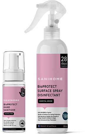 SaniHome BioProtect 長效殺菌產品採用澳洲廠方 Silyl-Quat納米科技。據第三方實驗室測試所顯示的結果,它出色的功效和持效性,使我們的產品超越了現今市面上任何產品的表現。我們的產品是由獨特的多元季銨鹽混合物組成,當中更包含了精緻的聚合物骨架配方,以發揮各種抗菌功效。由這三個元素組成的系統當中,各元素相互配合,形成了安全又強大的抗菌功力,不僅可殺滅所接觸到的微生物,還可持續不斷地發揮抗菌功能